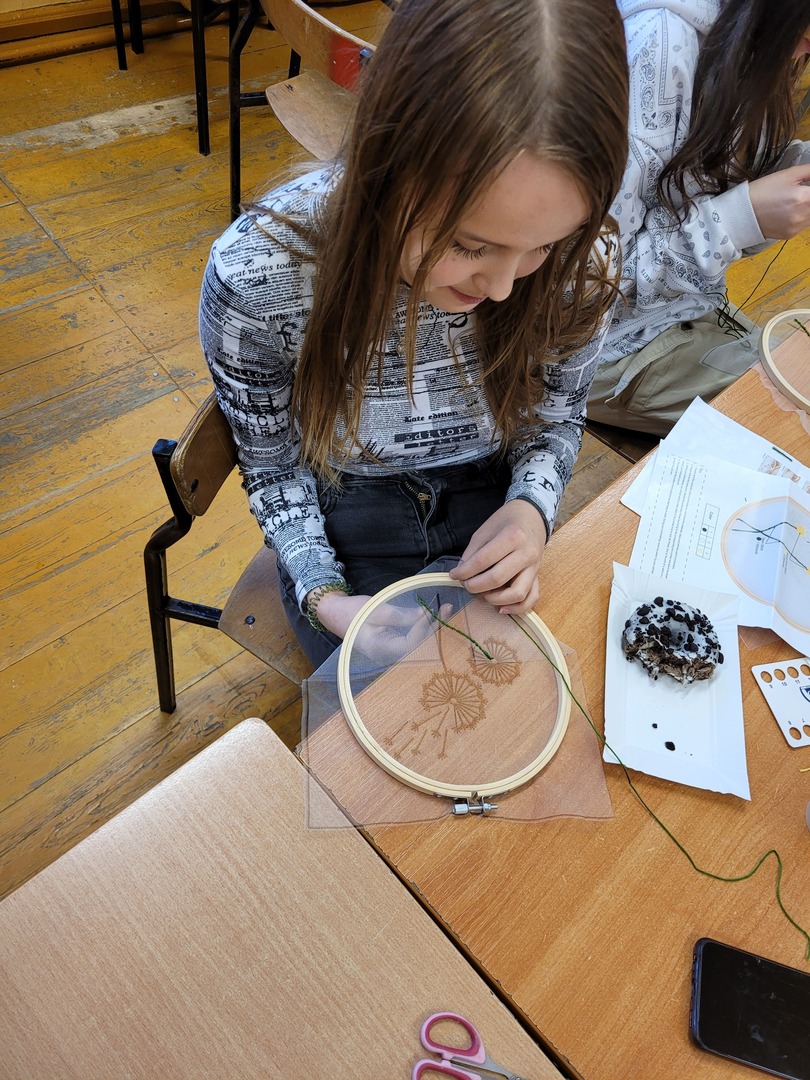6 marca 2023 roku uczennice klasy VIII miały możliwość przeniesienia się do czasów, w których ręczne zdobienie tkanin było sztuką, a malowanie za pomocą igły i nici - prawdziwym majstersztykiem.