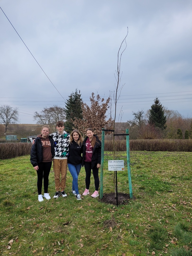 Dodatkową atrakcją było sadzenie dęba, który otrzymał nazwę ,,Bazyliszek”. Króluje on teraz przy wejściu głównym naszej wspaniałej szkoły. Z tej okazji została przygotowana pamiątkowa tabliczka. Serdecznie dziękujemy firmie ,,Krzewy Ozdobne Grzegorz Rogoś” za ufundowanie oraz posadzenie drzewka!