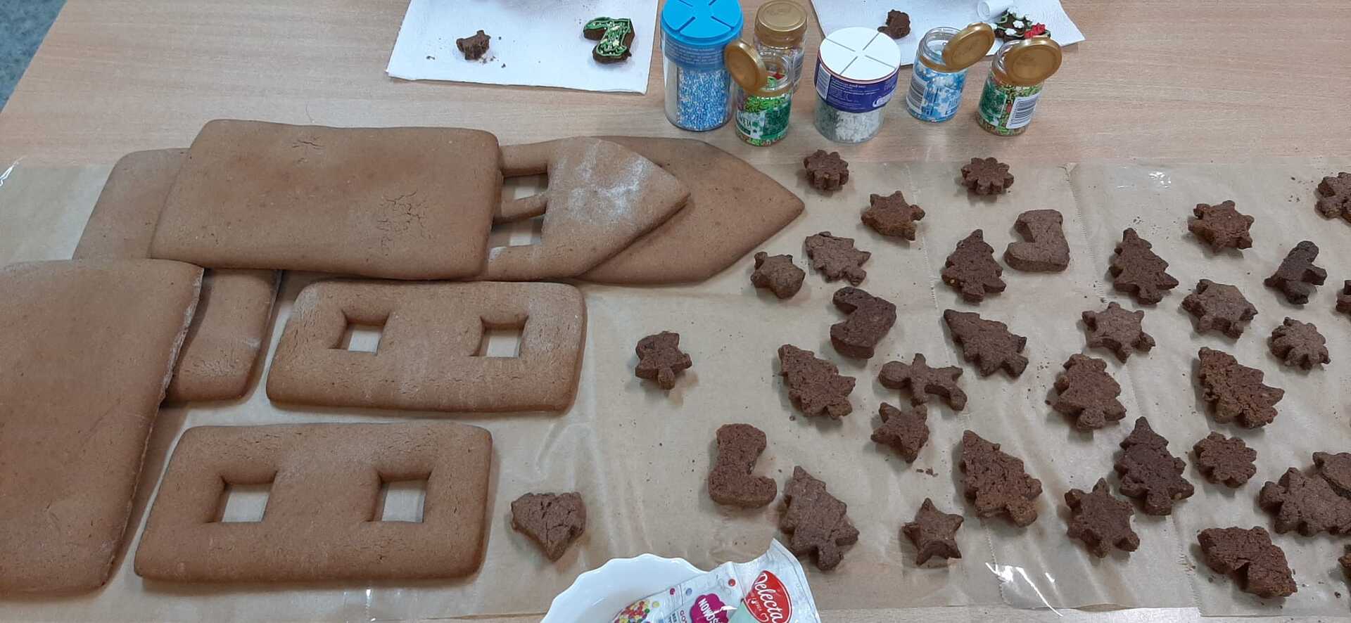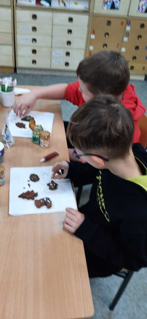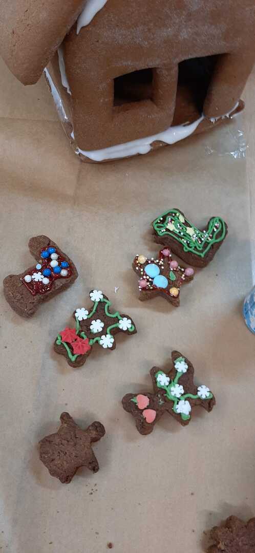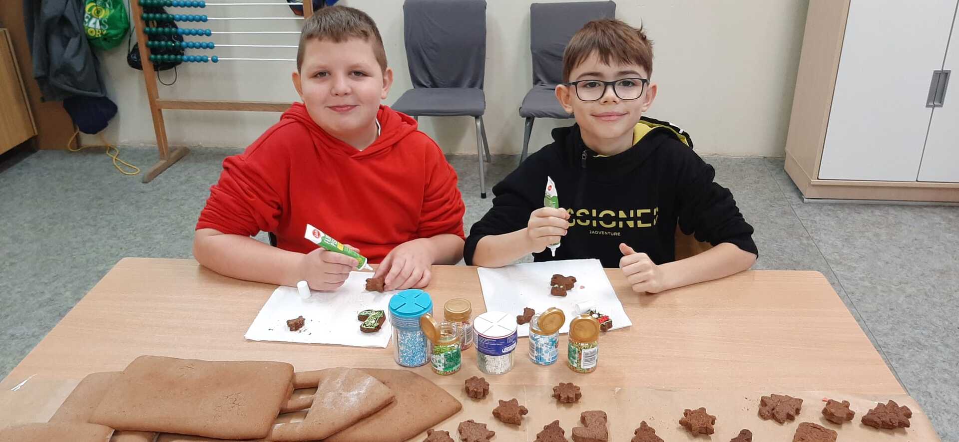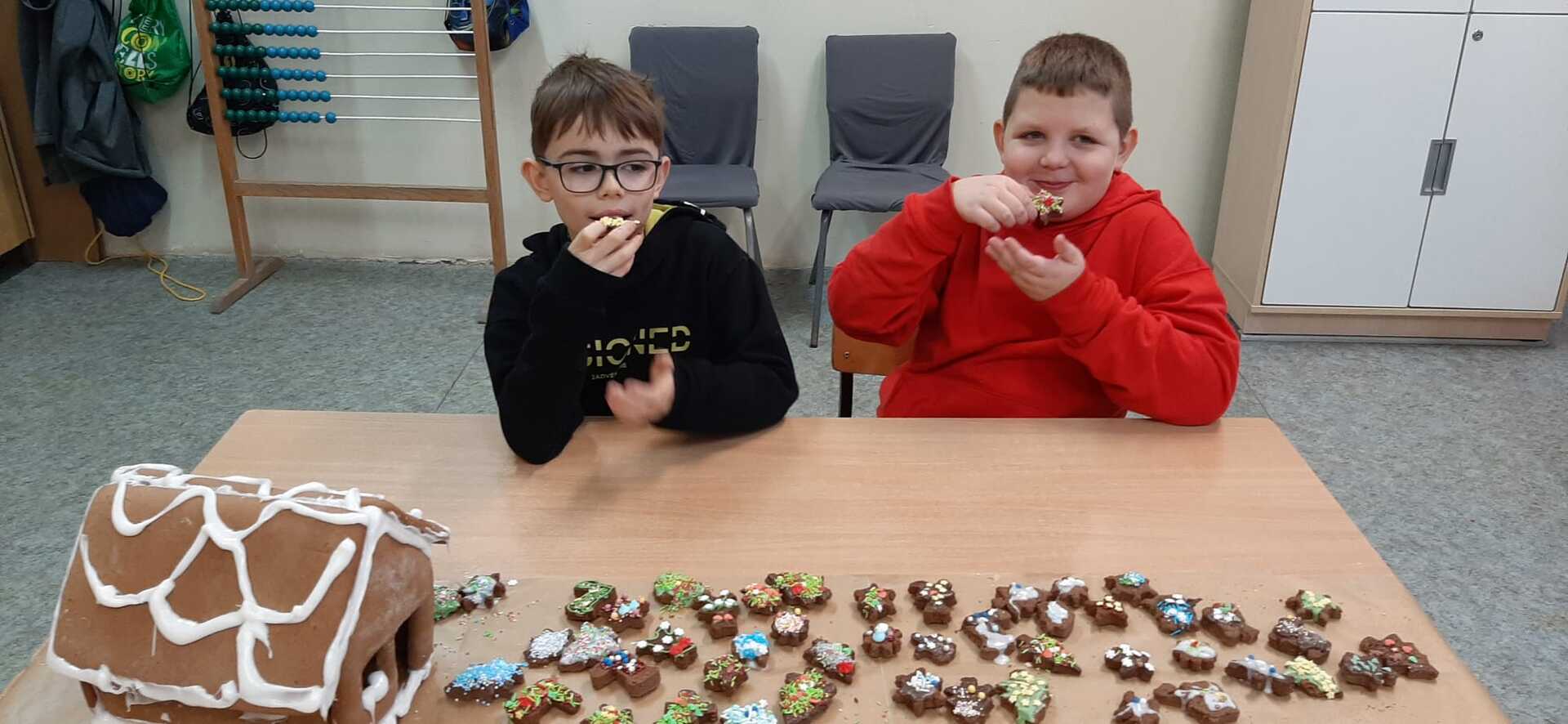 „Coraz bliżej święta (…) najlepsze prezenty ukryte są w sercach”. W przedświąteczny czas każdemu zdarza się nucić kolędy i świąteczne piosenki. We wtorek 19 grudnia 2023 r. w Szkole Podstawowej w Smogórach uczniowie trzeciej klasy spędzili miło czas na kolędowaniu podczas dekorowania pierników. Otworzyli nie tylko swoje serca, ale także wykazali się wyobraźnią i precyzją podczas dekorowania wypieków lukrem, czekoladą, cukrową posypką i pisakami. Wśród piernikowych bucików, lukrowanych choinek i kolorowych gwiazdeczek, nie mogło zabraknąć piernikowej chatki, po której błyszczący lukier spływał jak śnieg w słoneczny zimowy dzień. Zabawa była doskonała, a zwieńczeniem warsztatów była degustacja przepięknie ozdobionych pierniczków. Szczególne podziękowania kieruję do Rodziców, którzy zaopatrzyli nas w słodkie ozdoby, cukrowe pisaki i błyszczący lukier.