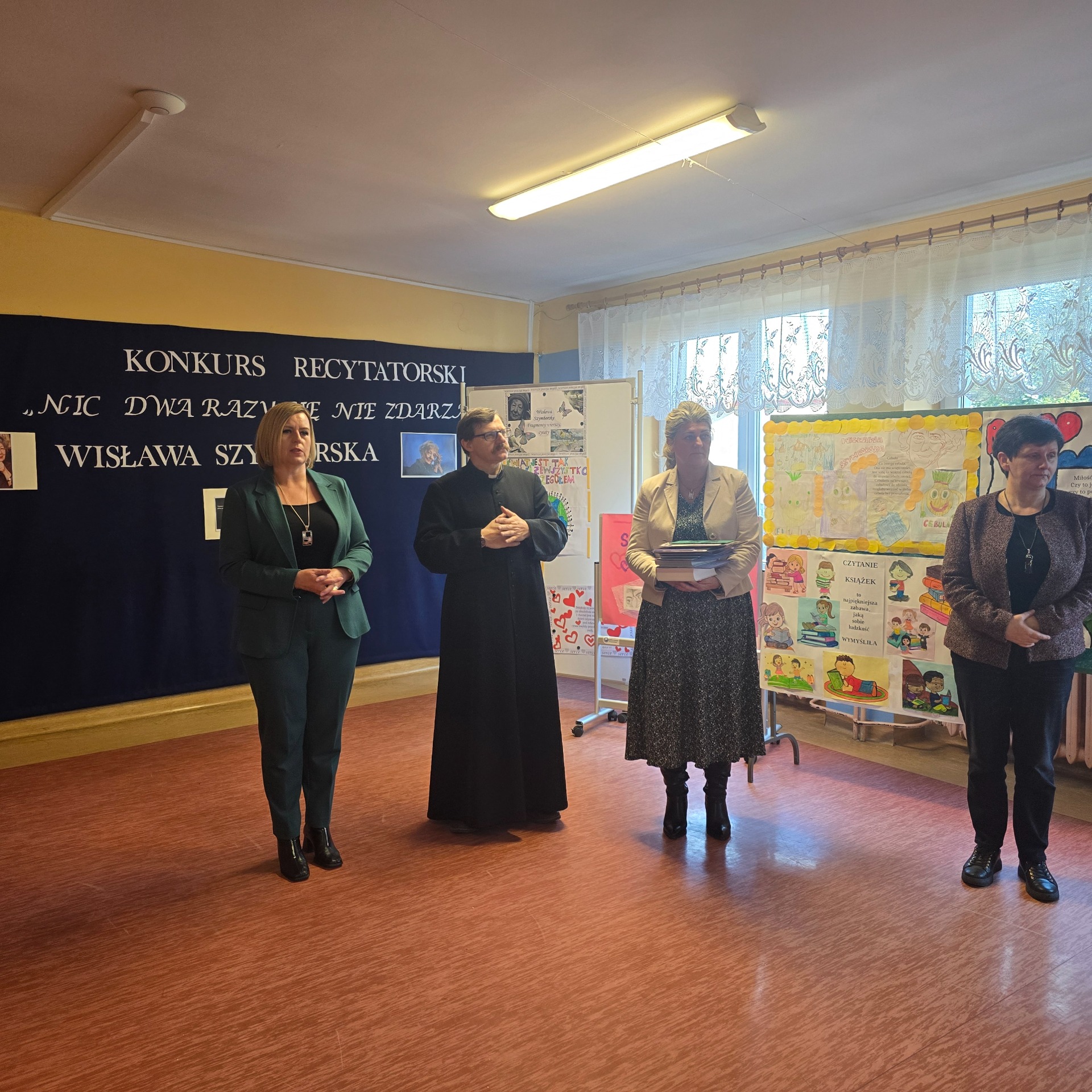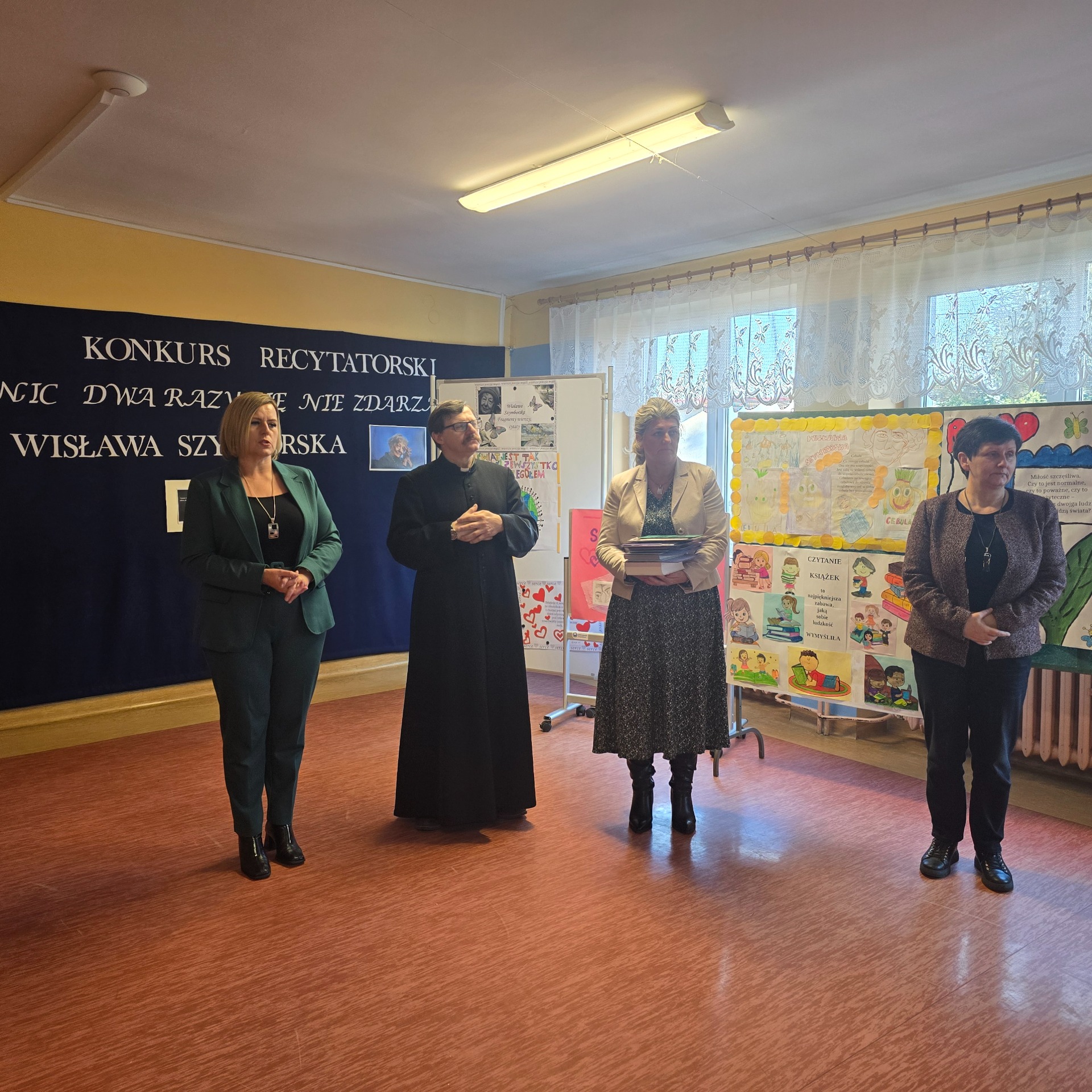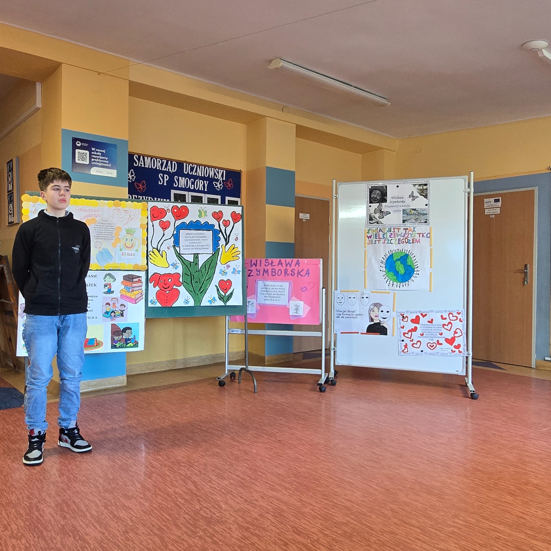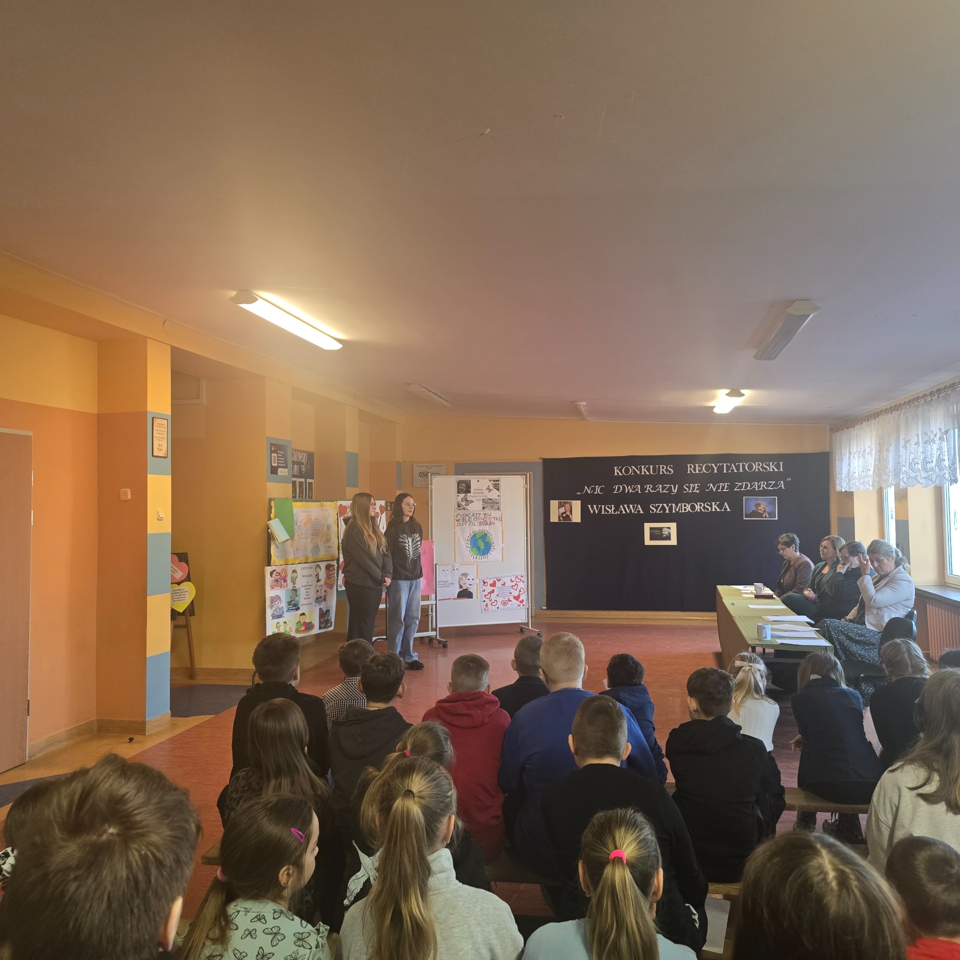 W ramach poznawania naszej przyszłej patronki uczniowie oglądają także reportaże o poetce oraz biorą udział w lekcjach poświęconych jej twórczości. Natomiast 6 marca 2025 r. odbył się konkurs recytatorski dla klas III – VIII. Uczniowie deklamowali wiersze Wisławy Szymborskiej. Celem tego wydarzenia było przede wszystkim zainteresowanie poezją, a także zachęcenie do występów przed publicznością! Wszyscy uczestnicy zaprezentowali swoje niebywałe umiejętności, doskonałą pamięć, wzorową intonację oraz dykcję.