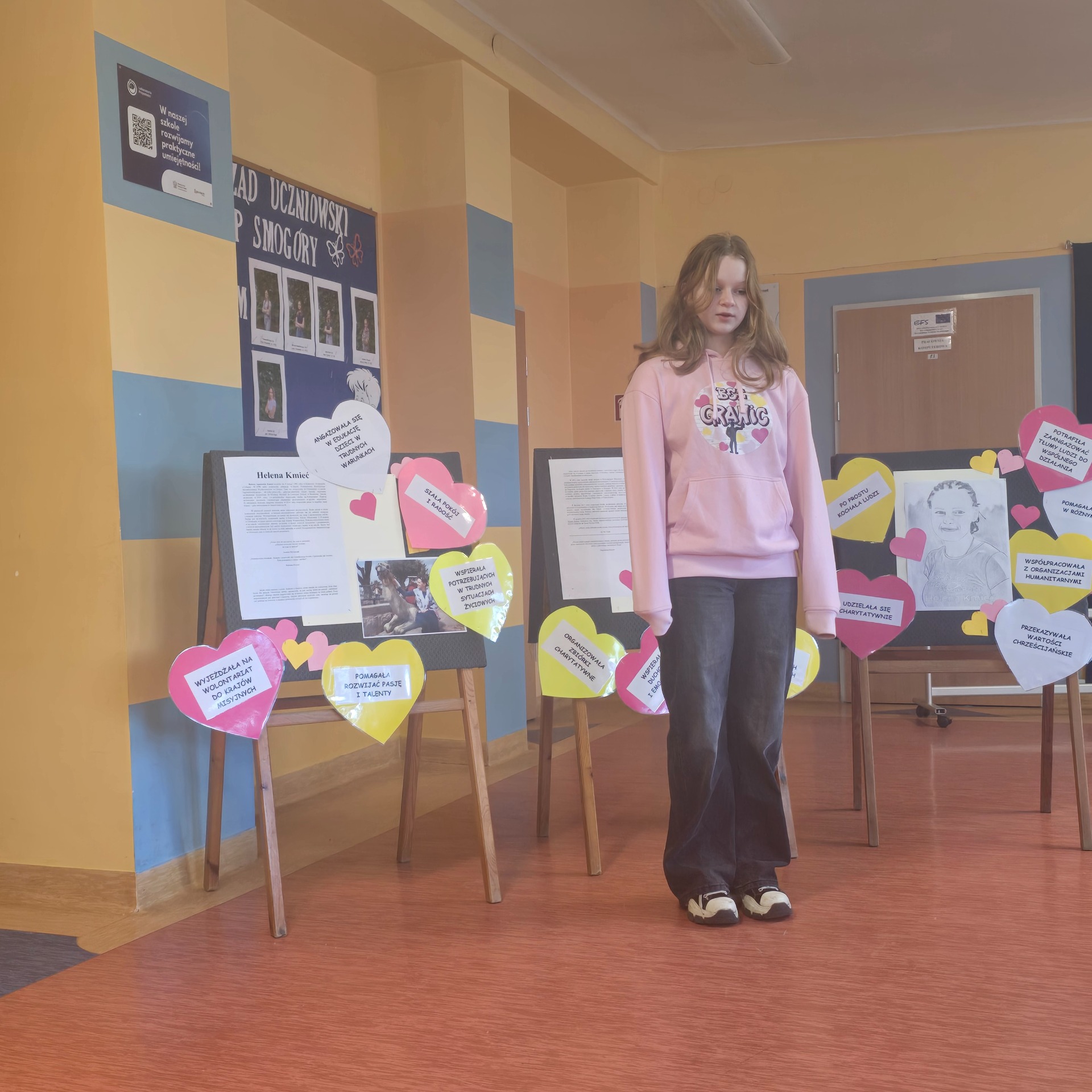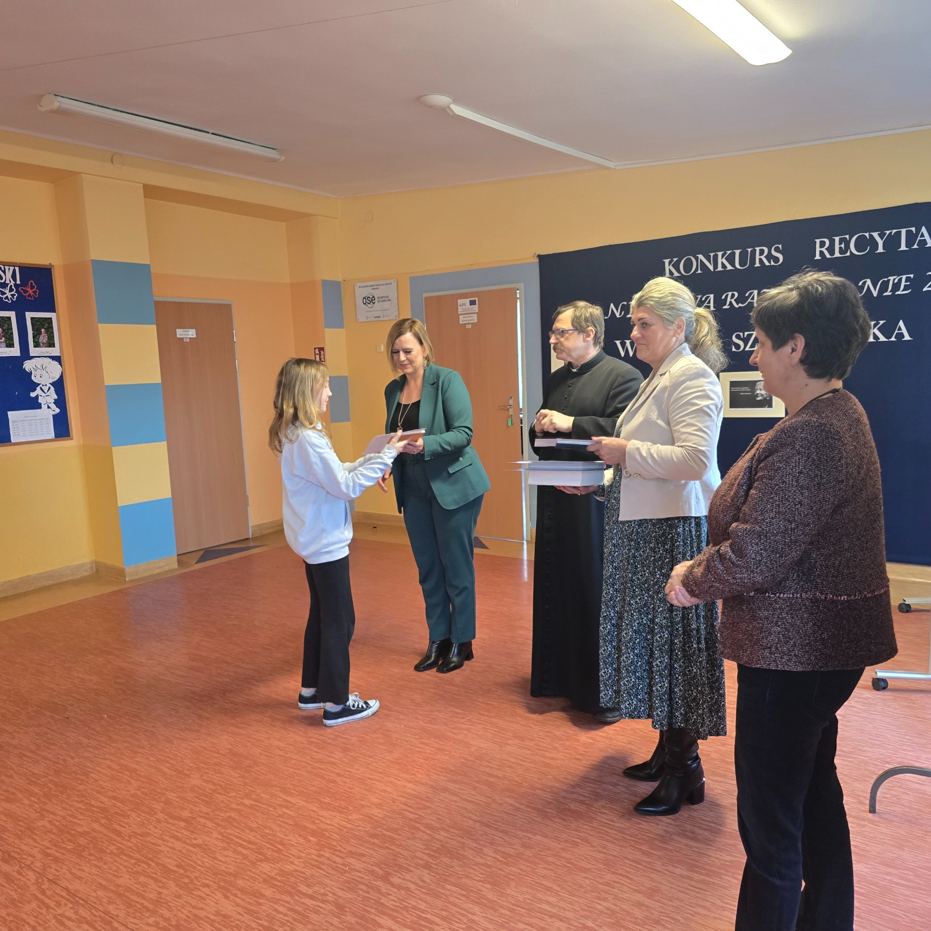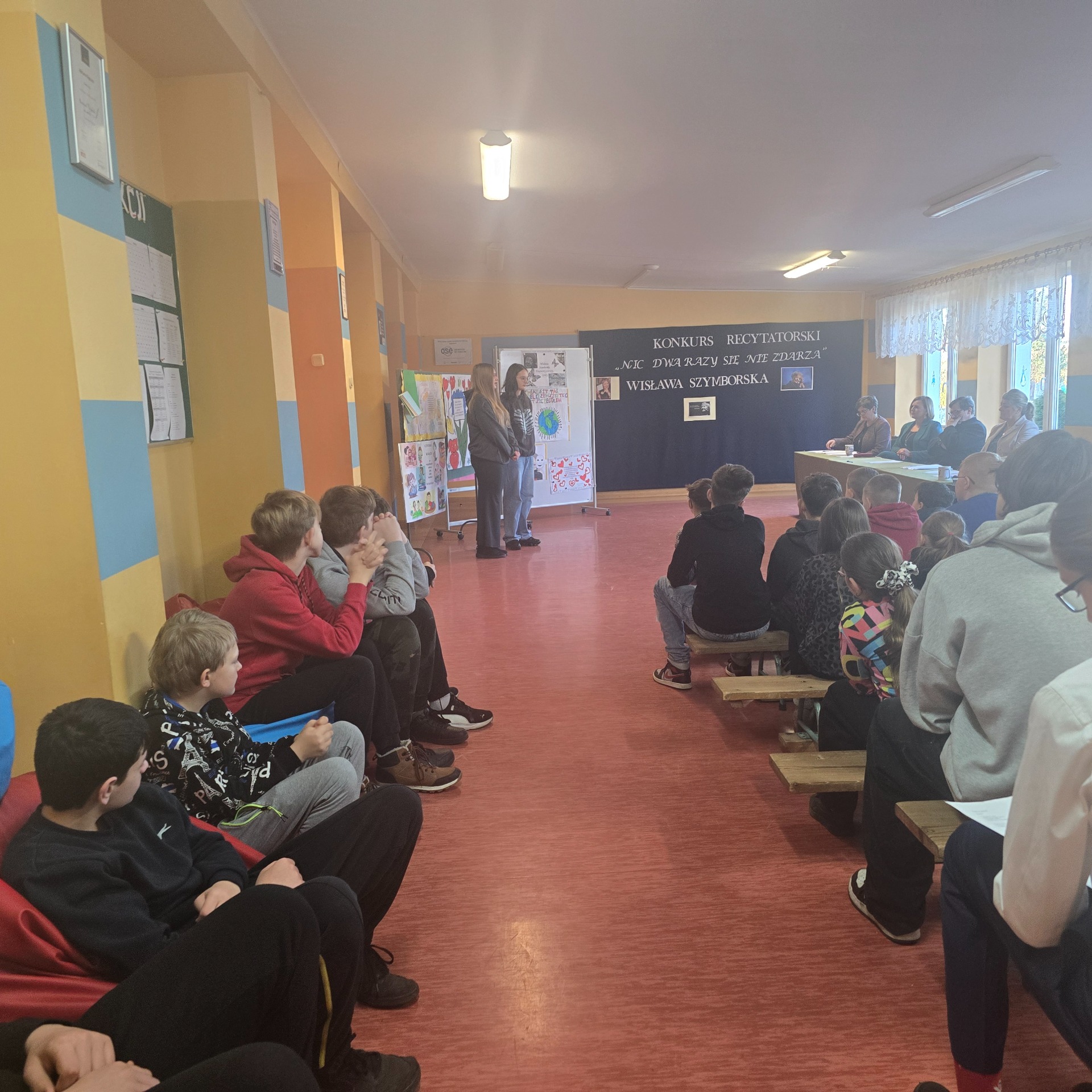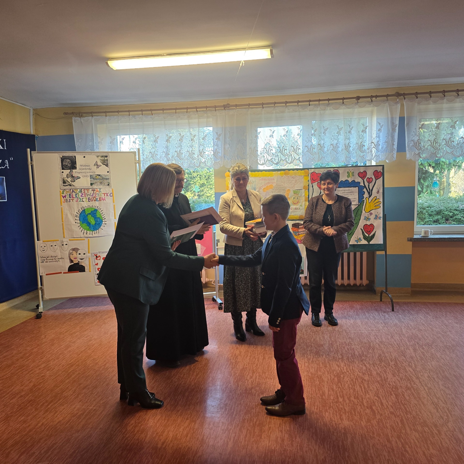 W ramach poznawania naszej przyszłej patronki uczniowie oglądają także reportaże o poetce oraz biorą udział w lekcjach poświęconych jej twórczości. Natomiast 6 marca 2025 r. odbył się konkurs recytatorski dla klas III – VIII. Uczniowie deklamowali wiersze Wisławy Szymborskiej. Celem tego wydarzenia było przede wszystkim zainteresowanie poezją, a także zachęcenie do występów przed publicznością! Wszyscy uczestnicy zaprezentowali swoje niebywałe umiejętności, doskonałą pamięć, wzorową intonację oraz dykcję.