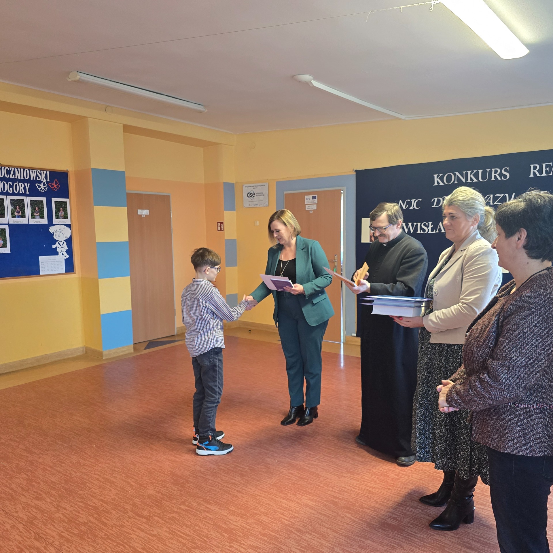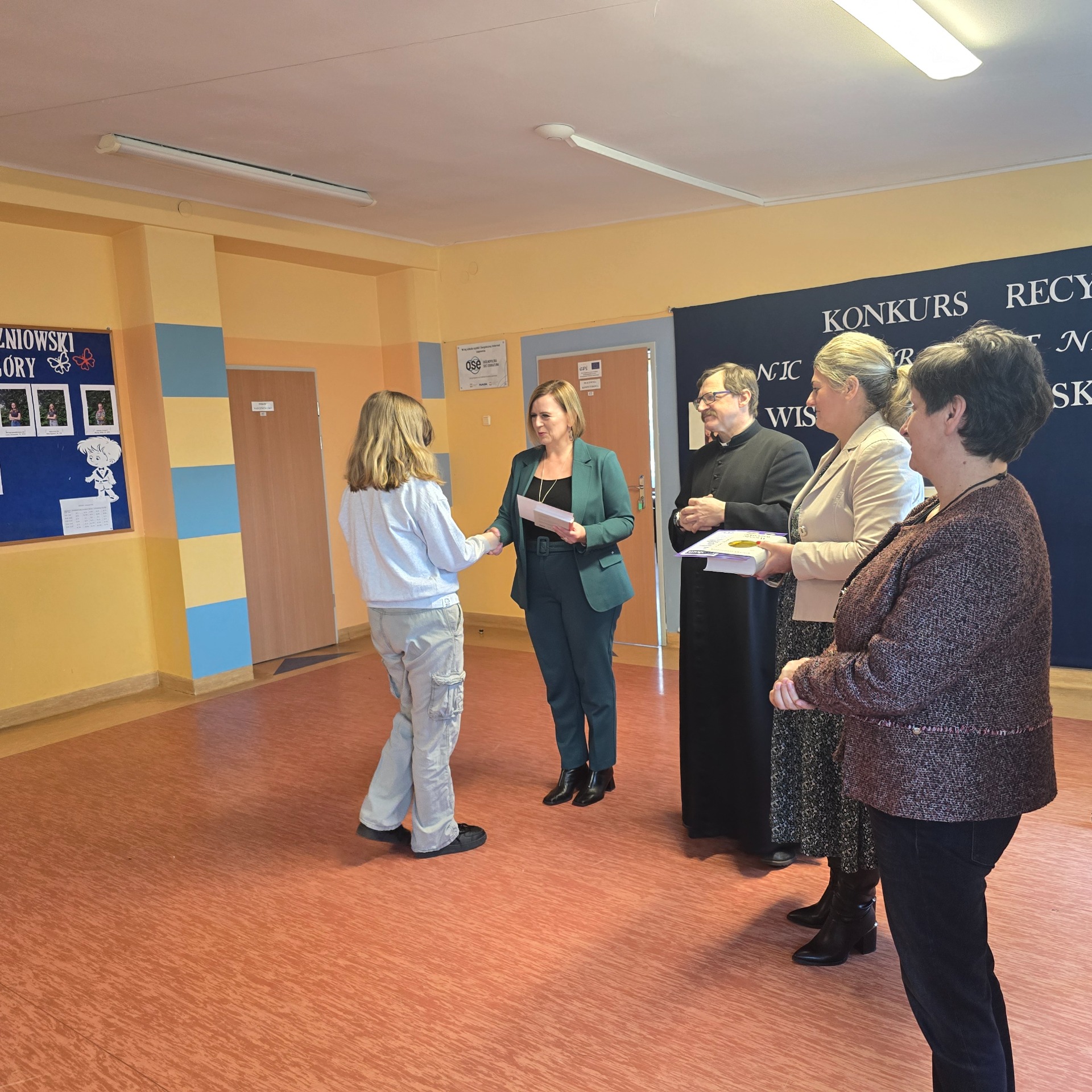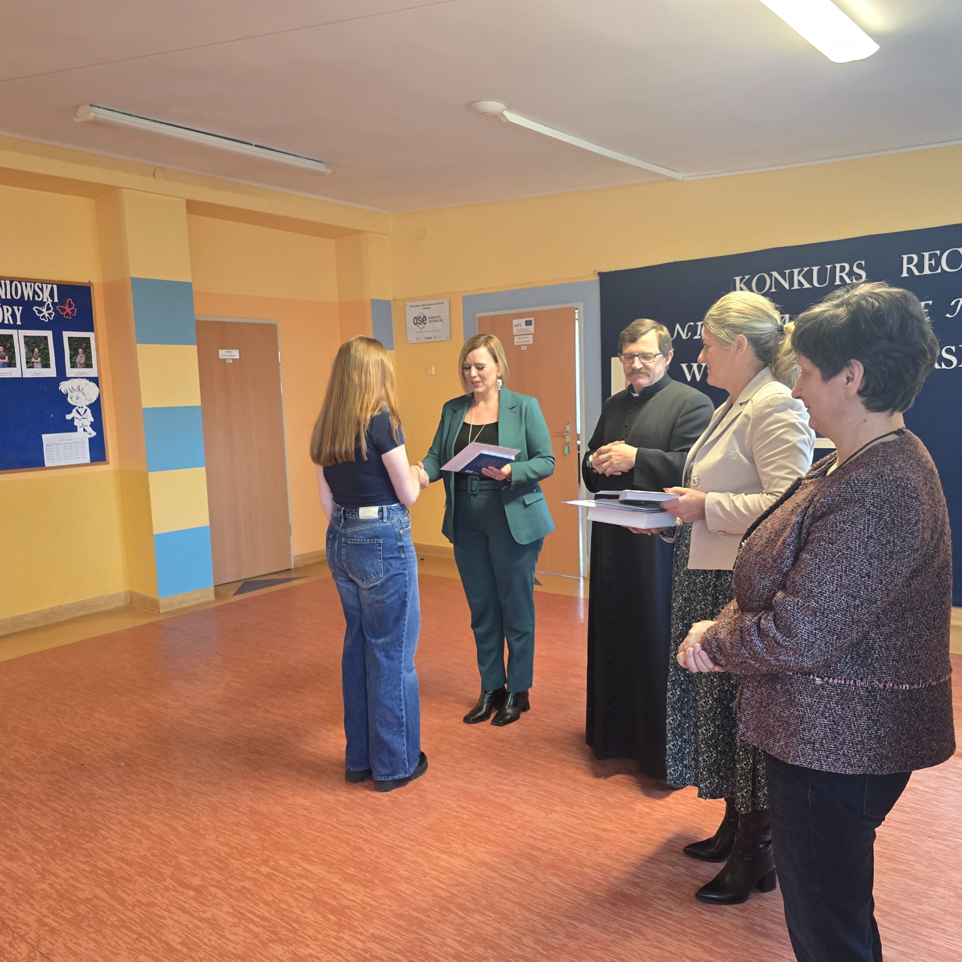Jury w składzie dyrektor szkoły pani Monika Wróbel, pani Ewa Offman, pani Adriana Rogoś, pani Agata Kołyszko oraz ks. Jerzy Najdek wyłoniło trzech laureatów: