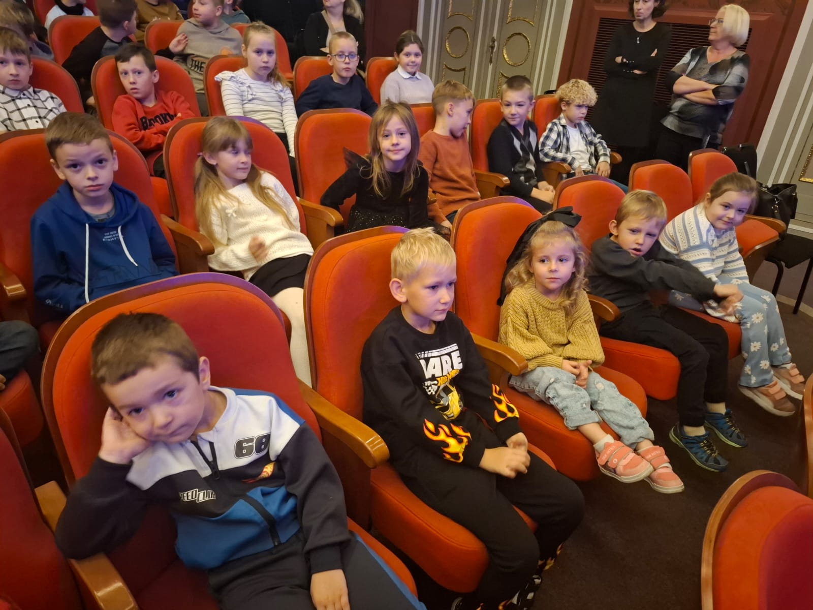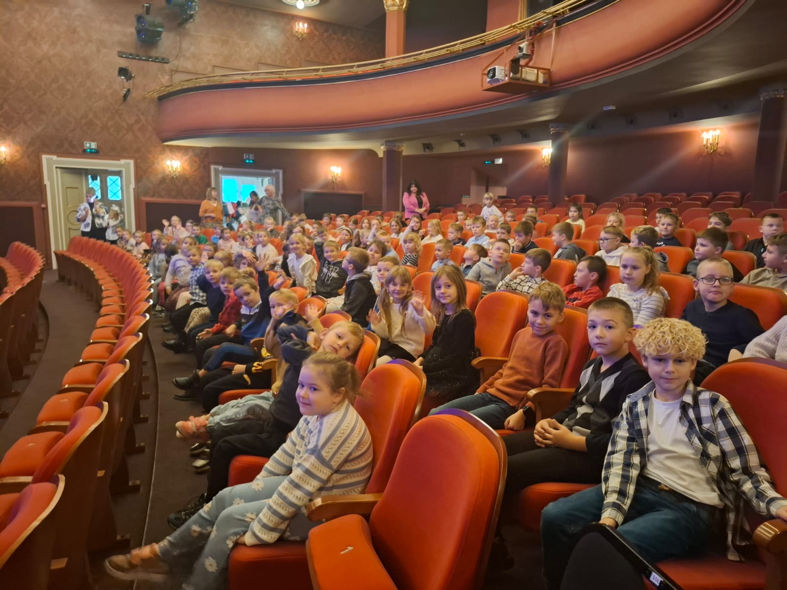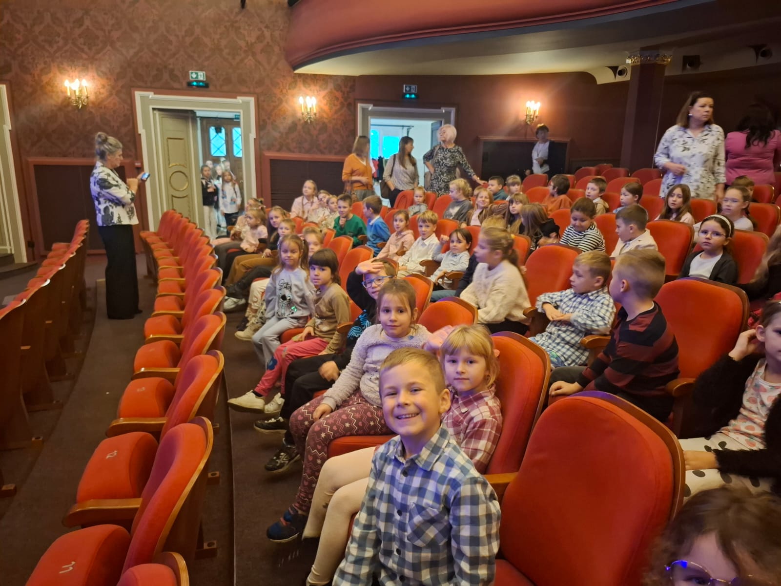 Dla niektórych było to pierwsze spotkanie z teatrem. Duże wrażenie zrobiła na dzieciach piękna sala teatru i fotele dla widowni. Wszyscy śledzili przygody dzielnego Koziołka z dużym zainteresowaniem, a spektakl bardzo im się podobał, czego dowodem były gromkie brawa dla aktorów. Po zakończonym przedstawieniu uczniowie ustawili się do pamiątkowego zdjęcia z aktorami.