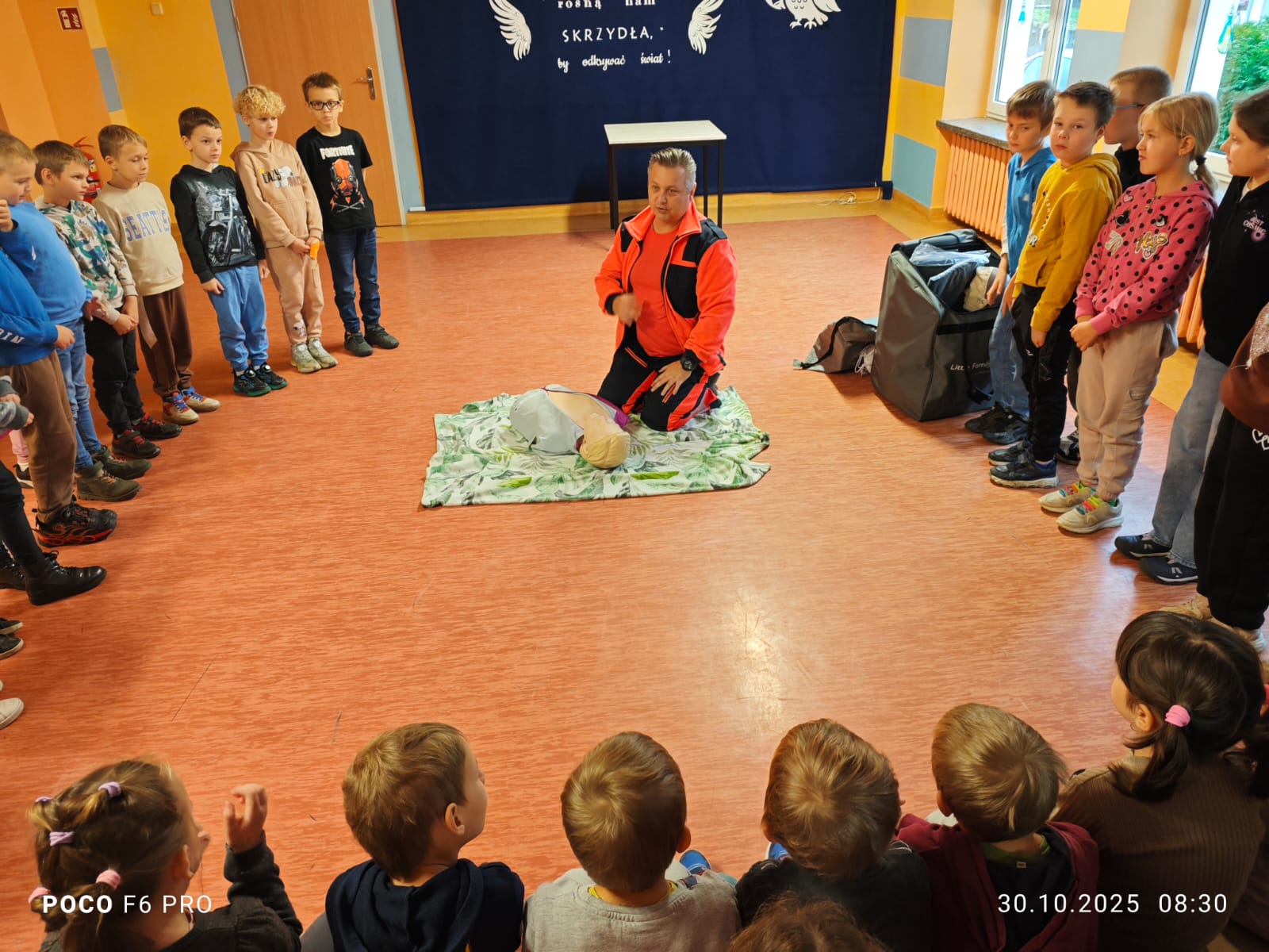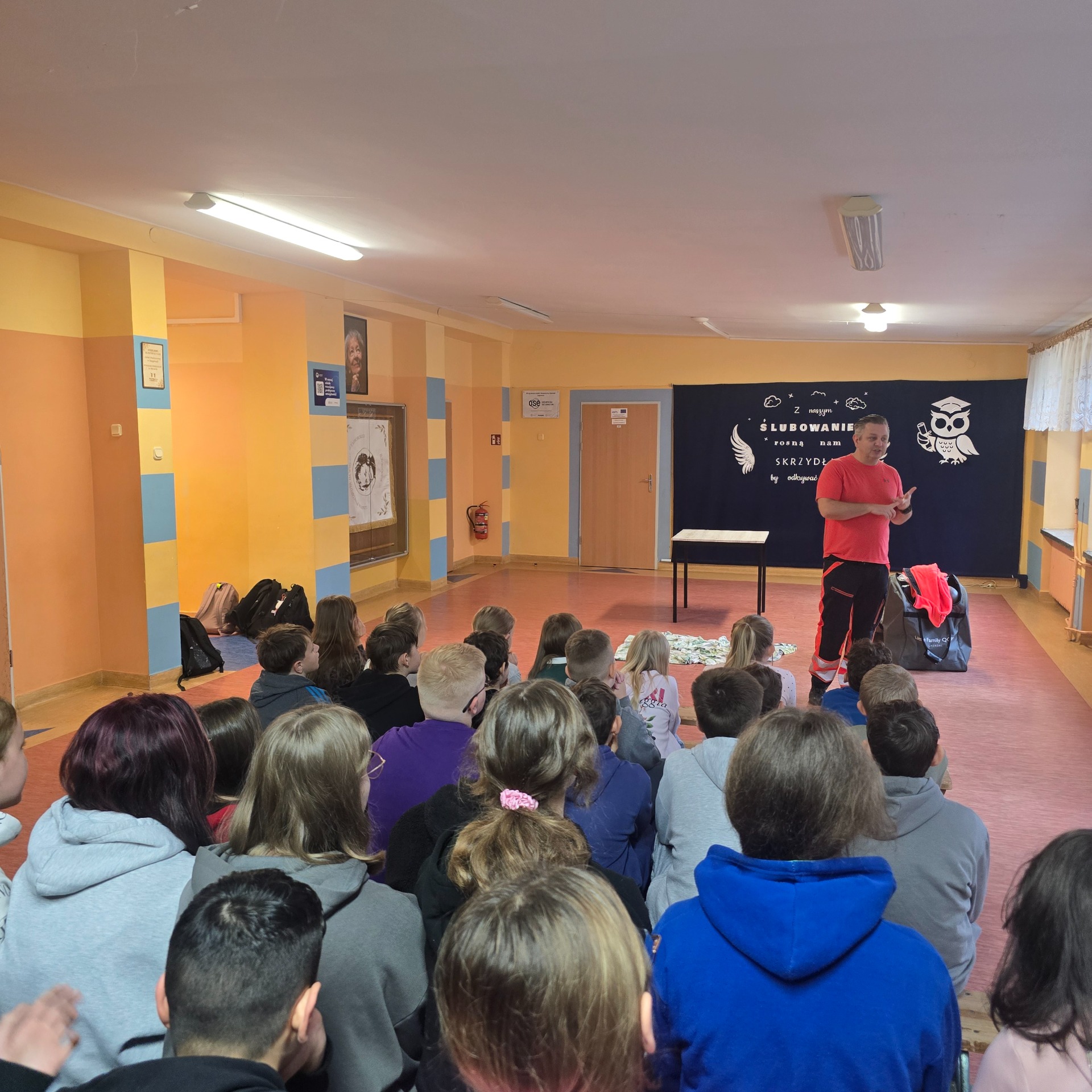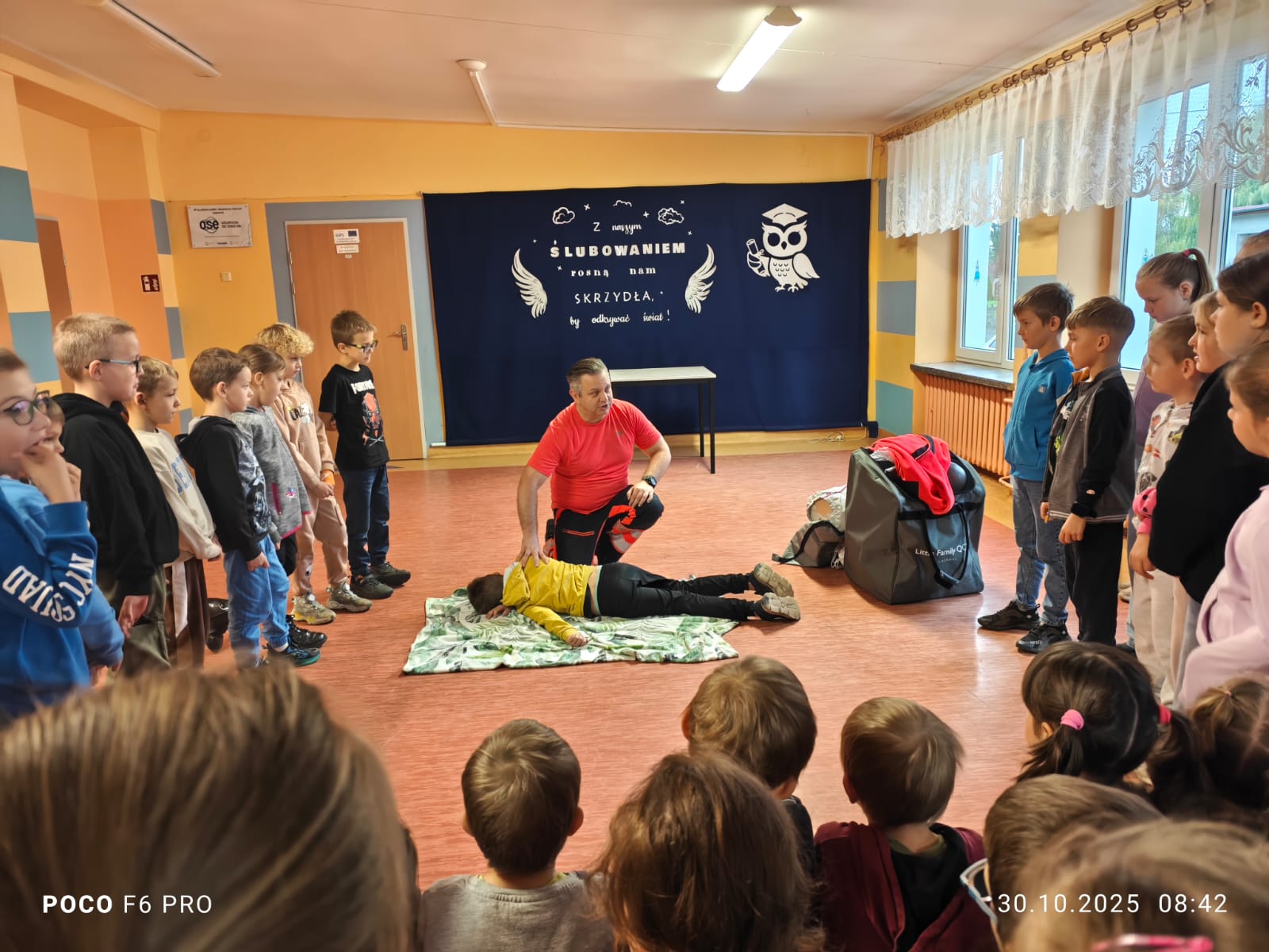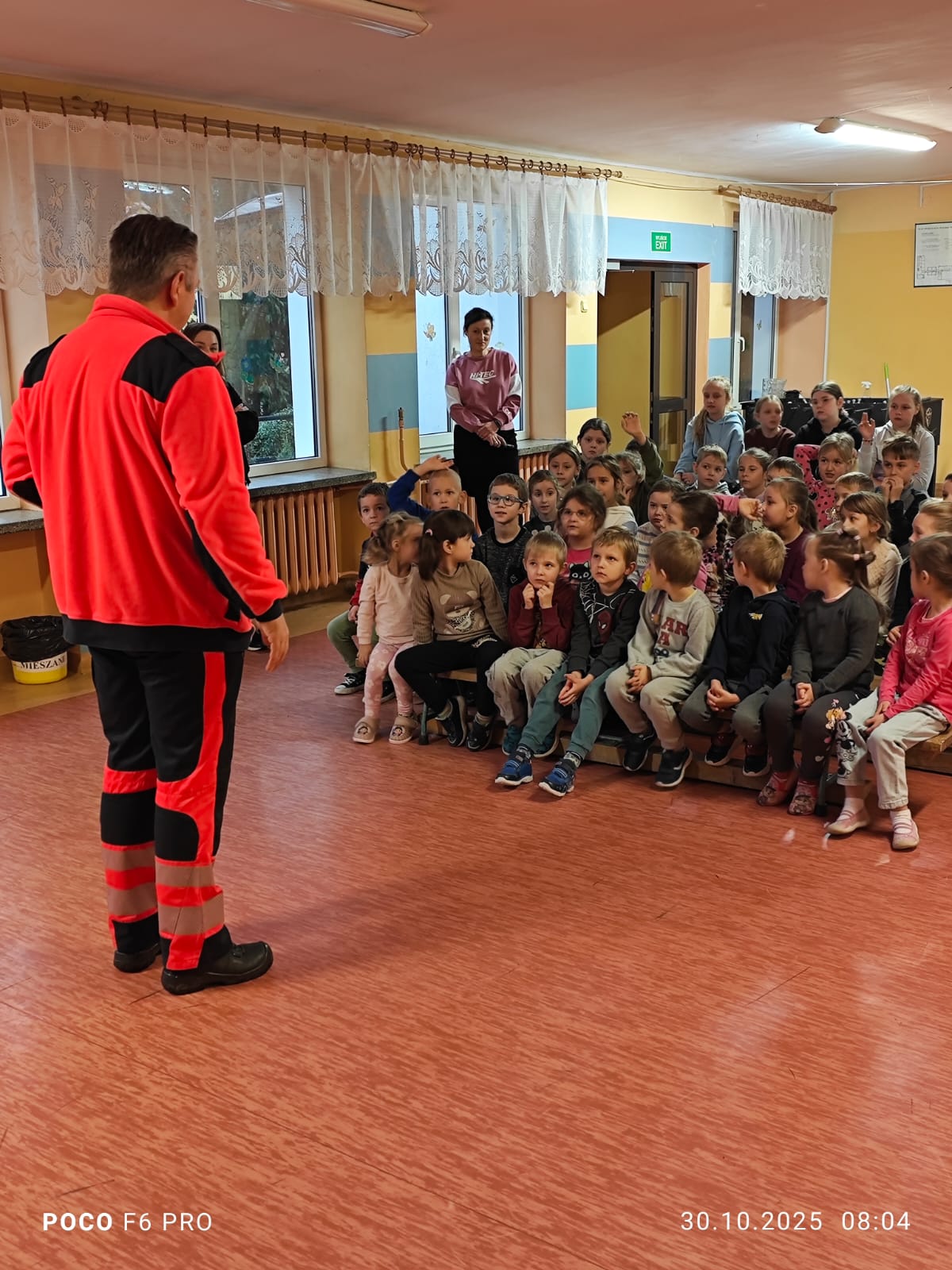 30 października 2025 r. Szkołę Podstawową im. Wisławy Szymborskiej w Smogórach odwiedził pan Łukasz Żyszkiewicz - ratownik i medyczny i strażak pracujący w Zawodowej Straży Pożarnej we Frankfurcie nad Odrą.