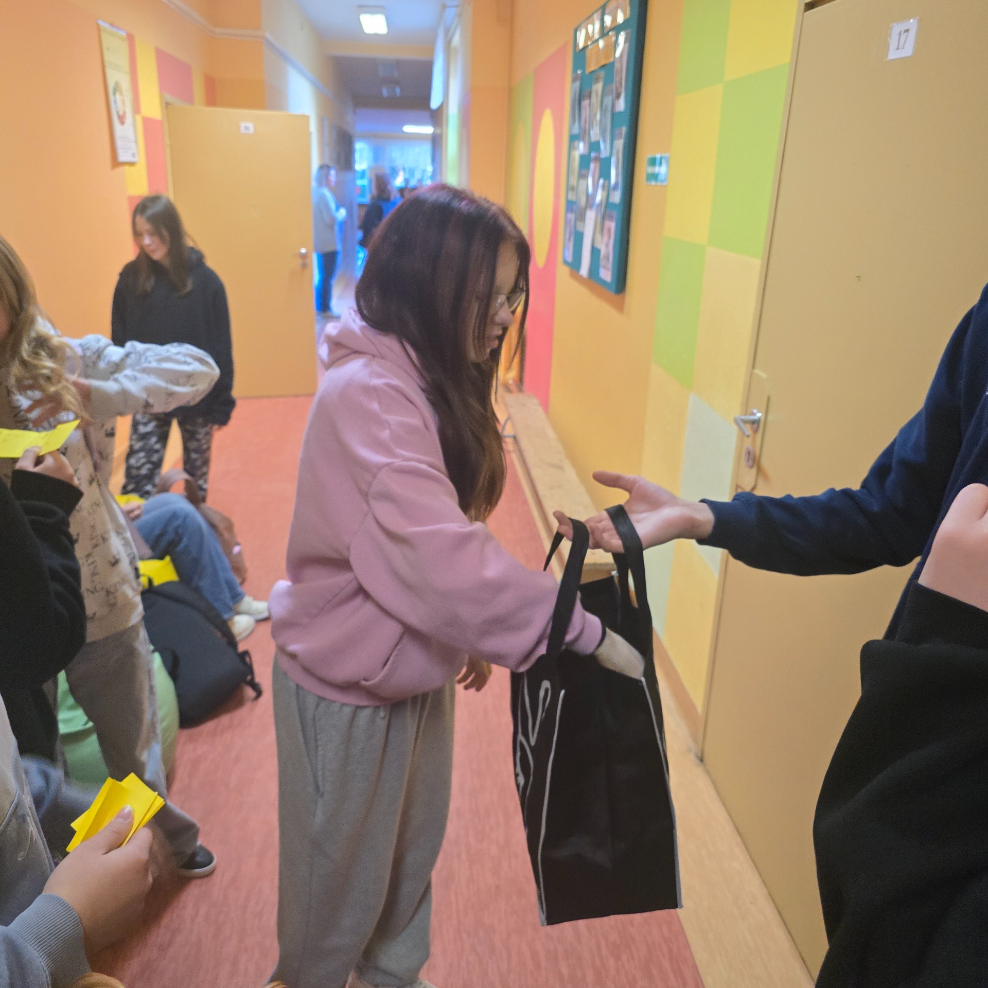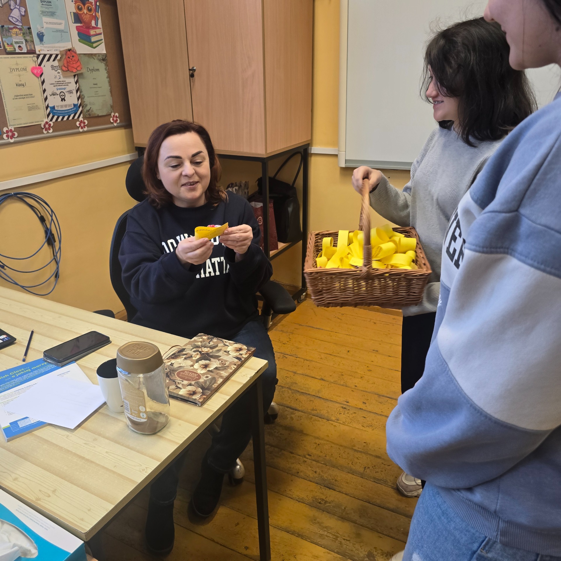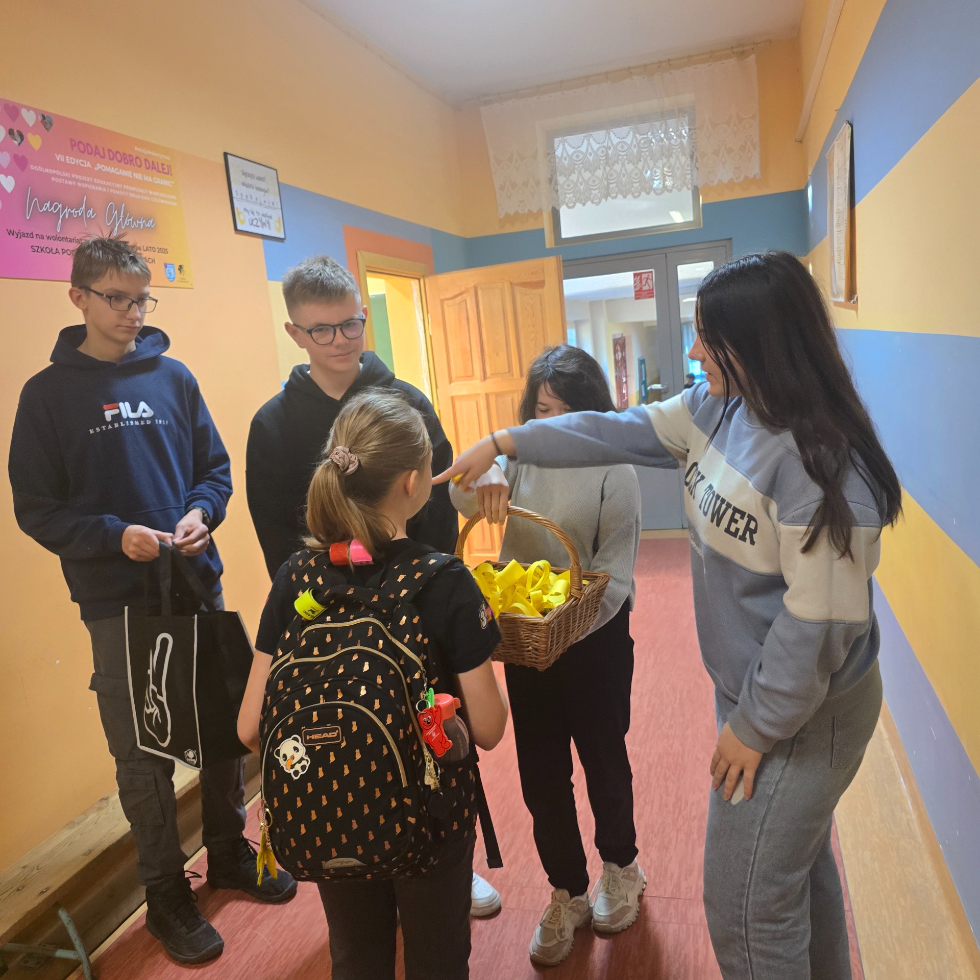 Kulminacją obchodów był rozdawany przez Samorząd „słodki upominek życzliwości”. Uczniowie klasy ósmej przygotowali własnoręcznie krótkie komplementy i pozytywne hasła, które dołączono do cukierków. Podczas przerw członkowie Samorządu rozdawali je wszystkim, wywołując uśmiechy i tworząc miłą, pełną radości atmosferę.
