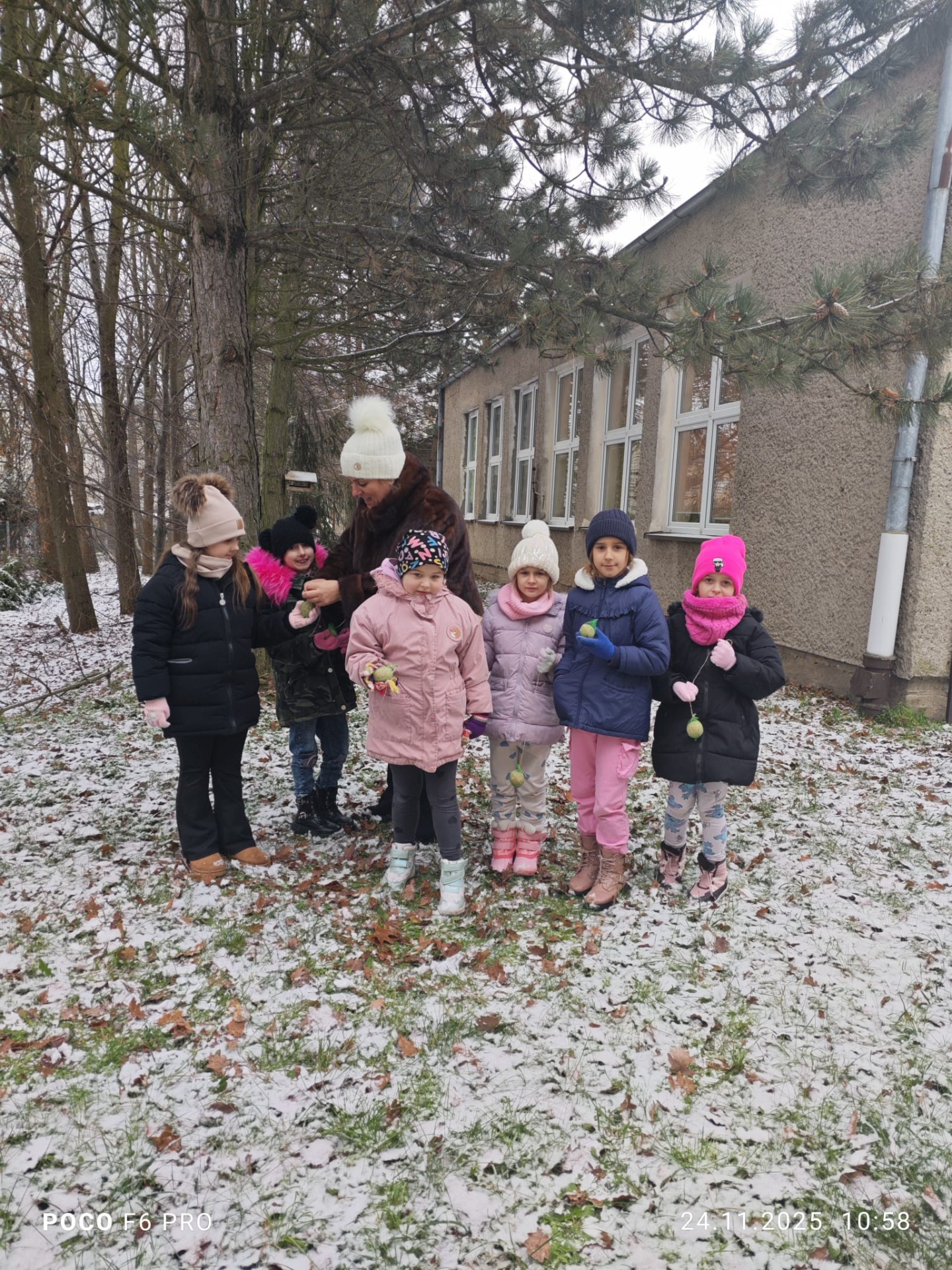 Za oknami robi się coraz chłodniej, a temperatura powietrza spada poniżej zera. To oznacza, że na naszą pomoc coraz bardziej liczą żyjące w pobliżu nas ptaki. Uczniowie kochają przyrodę i zwierzęta, dlatego rozumieją konieczność niesienia pomocy zwierzętom w czasie zimy. Pamiętają zwłaszcza o dokarmianiu ptaków. Wiedzą, że zima to ciężki czas, zwłaszcza dla skrzydlatych przyjaciół. W czasie zajęć z edukacji przyrodniczej uczniowie klasy I Szkoły Podstawowej im. Wisławy Szymorskiej w Smogórach rozmawiali wspólnie z wychowawczynią o konieczności niesienia pomocy zwierzętom zimową porą. Dowiedzieli się, że kiedy na dworze jest śnieg, to ptaki mają trudności ze znalezieniem pożywienia pod warstwą śniegu, a poszukiwania jedzenia pochłaniają dużo energii. Dlatego też dnia 24 listopada całą gromadką ruszyli, by porozwieszać na drzewach wokół szkoły pokarm dla zimujących w Polsce ptaków podarowany szkole przez panią Kasię mamę Jędrka. Dziękujemy!