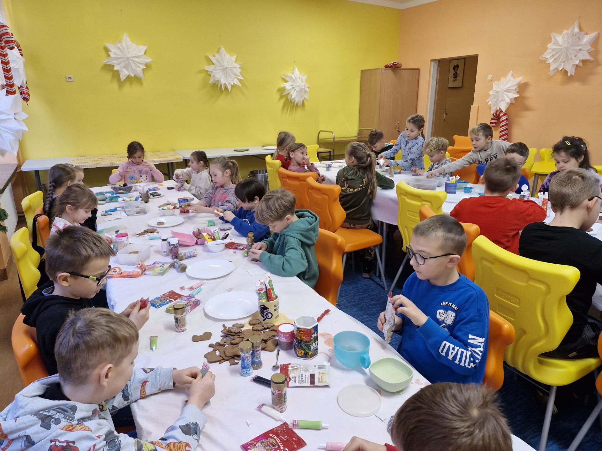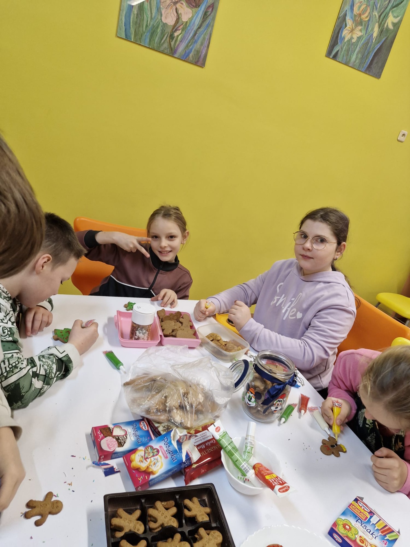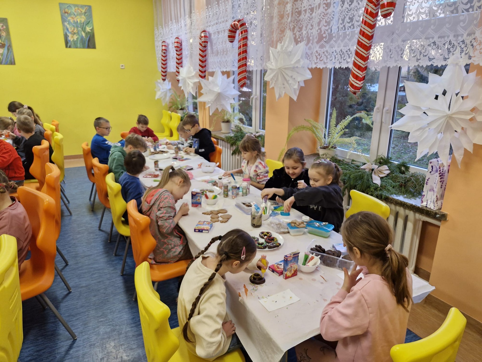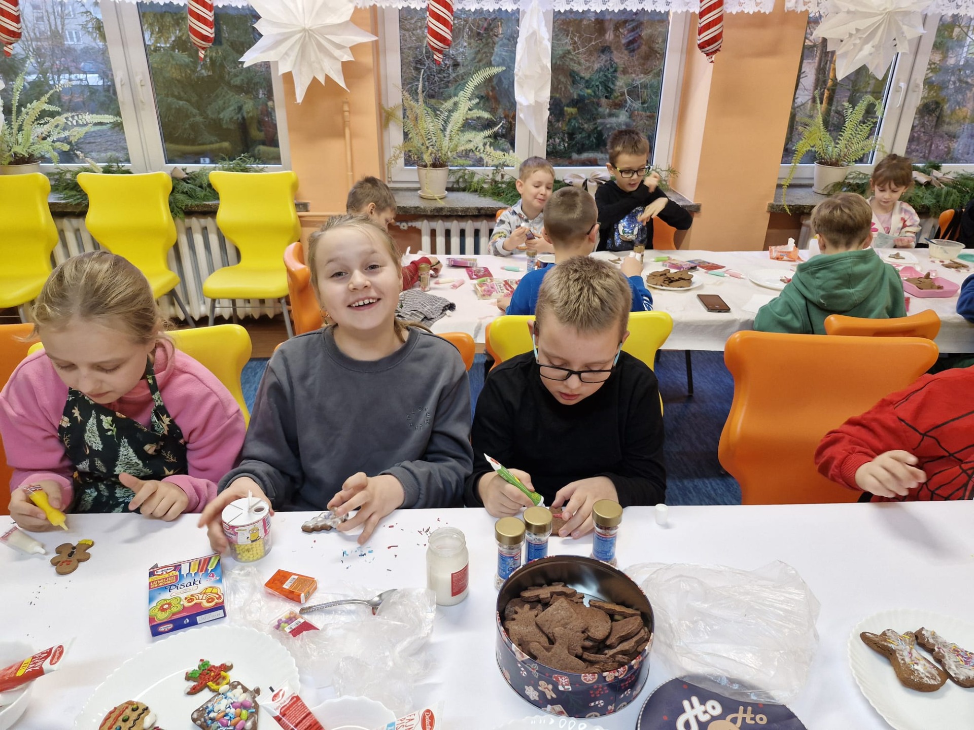 Dzieci z ogromnym zaangażowaniem dekorowały pierniki kolorowymi lukrami, posypkami i innymi ozdobami, tworząc wyjątkowe, niepowtarzalne wypieki. Nie zabrakło uśmiechów, dobrej zabawy i rozmów o tradycjach bożonarodzeniowych.