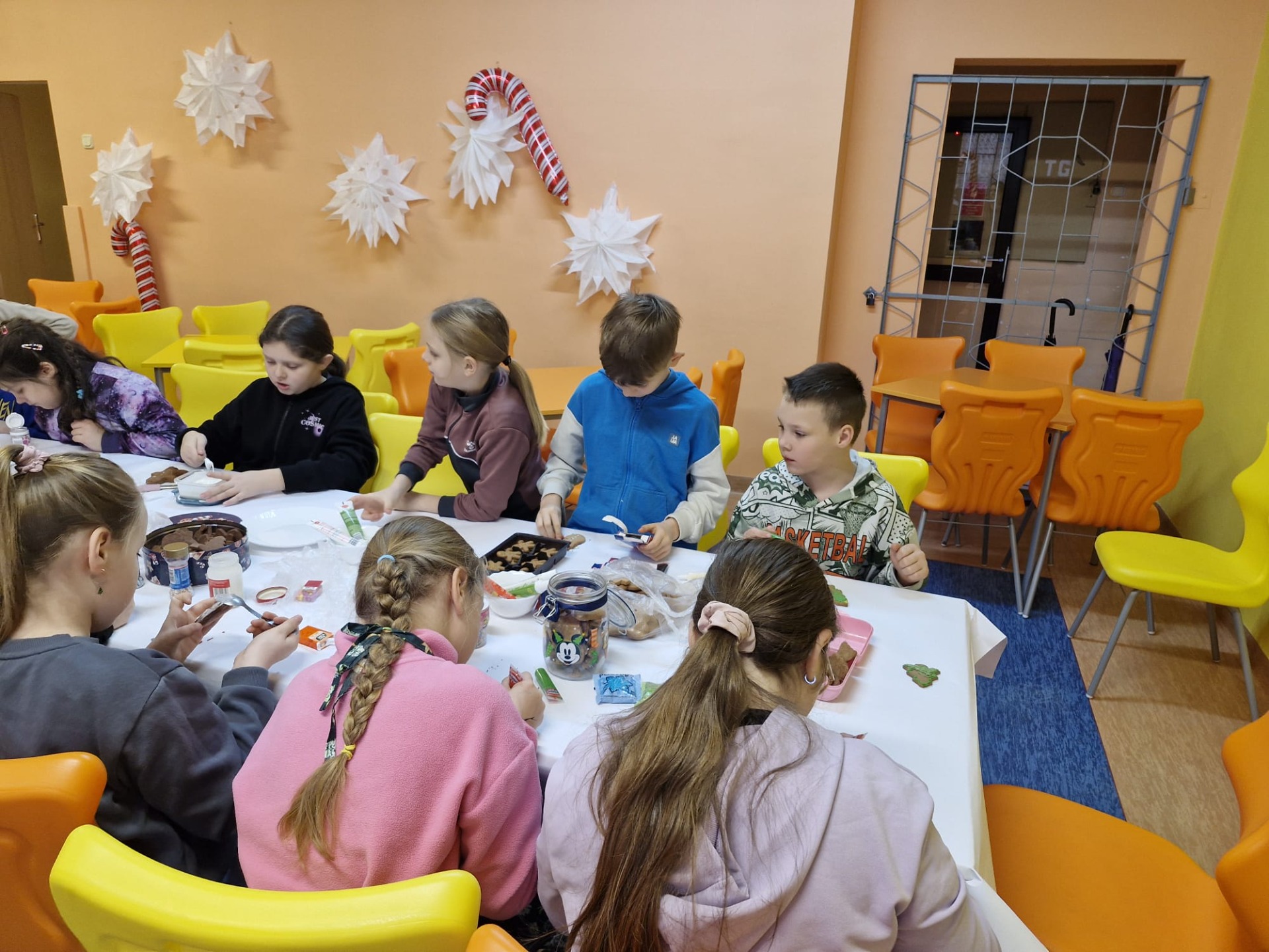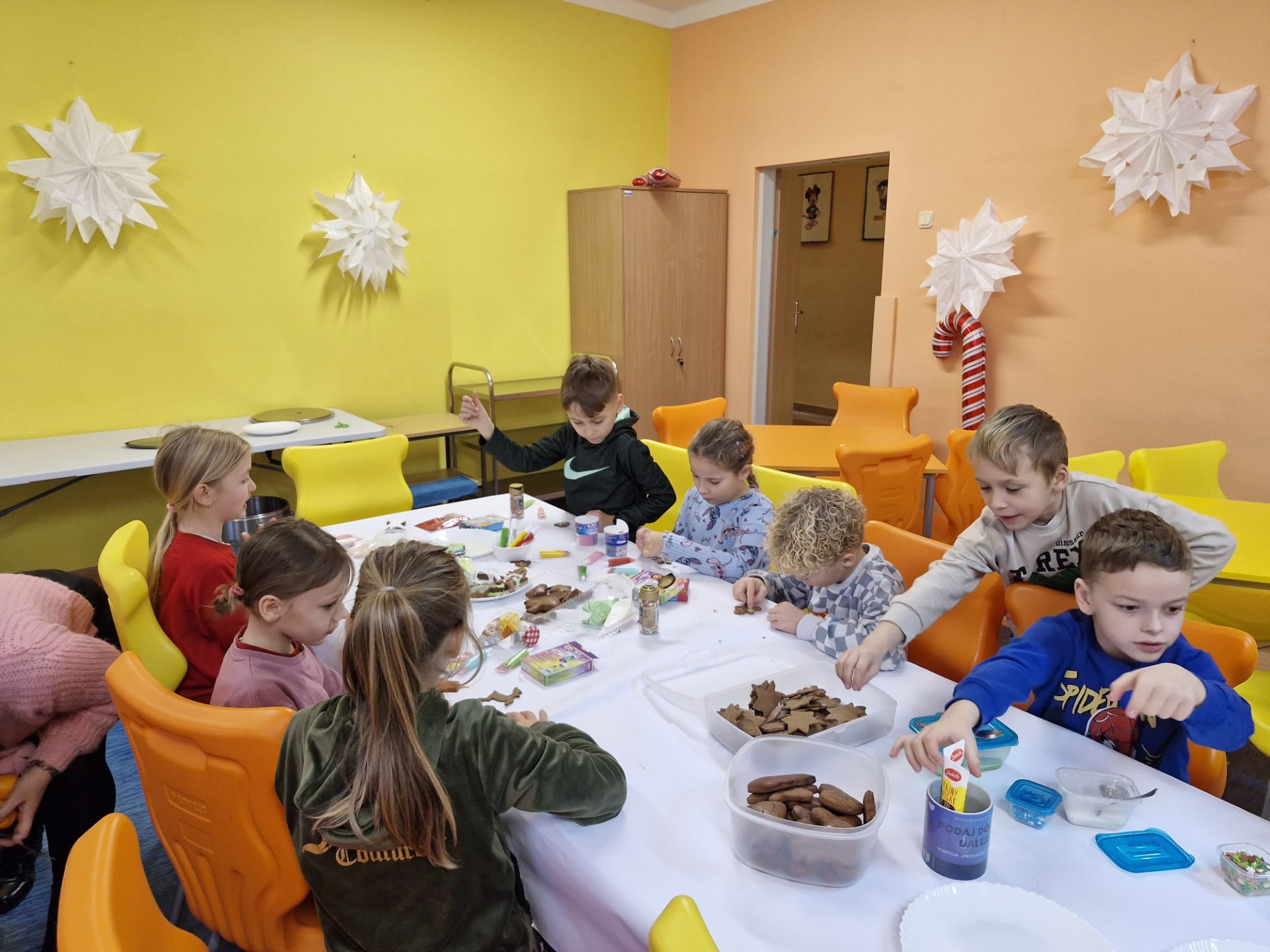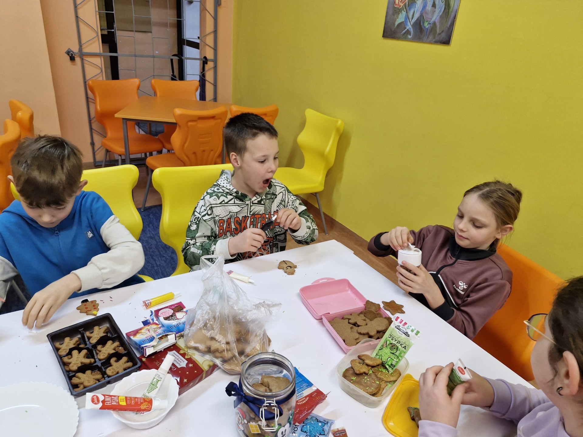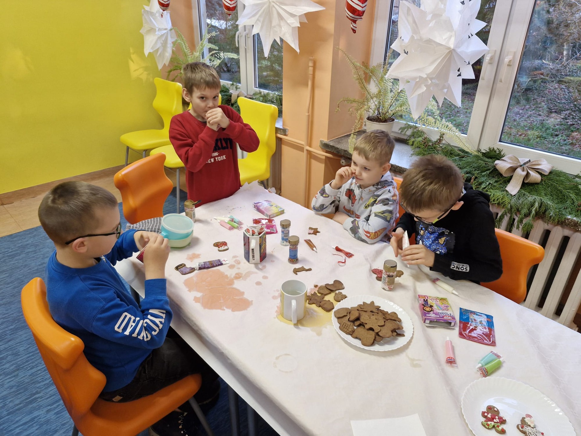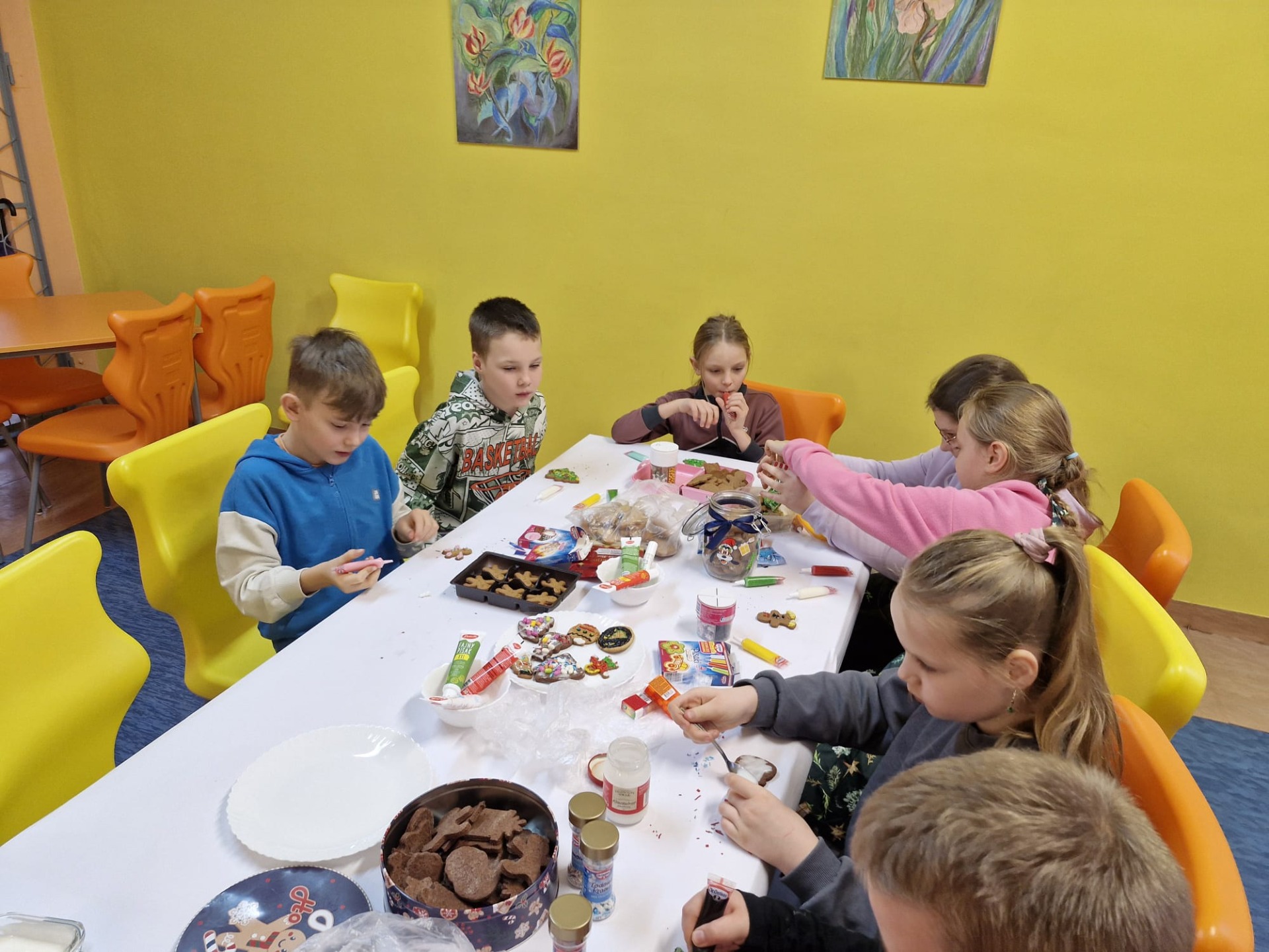 Dzieci z ogromnym zaangażowaniem dekorowały pierniki kolorowymi lukrami, posypkami i innymi ozdobami, tworząc wyjątkowe, niepowtarzalne wypieki. Nie zabrakło uśmiechów, dobrej zabawy i rozmów o tradycjach bożonarodzeniowych.