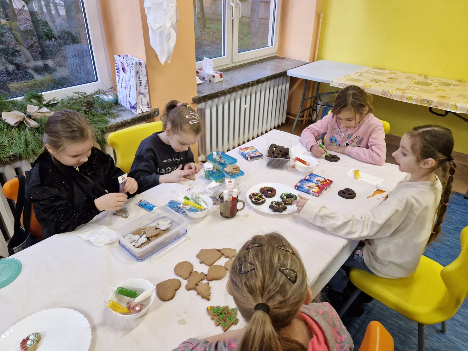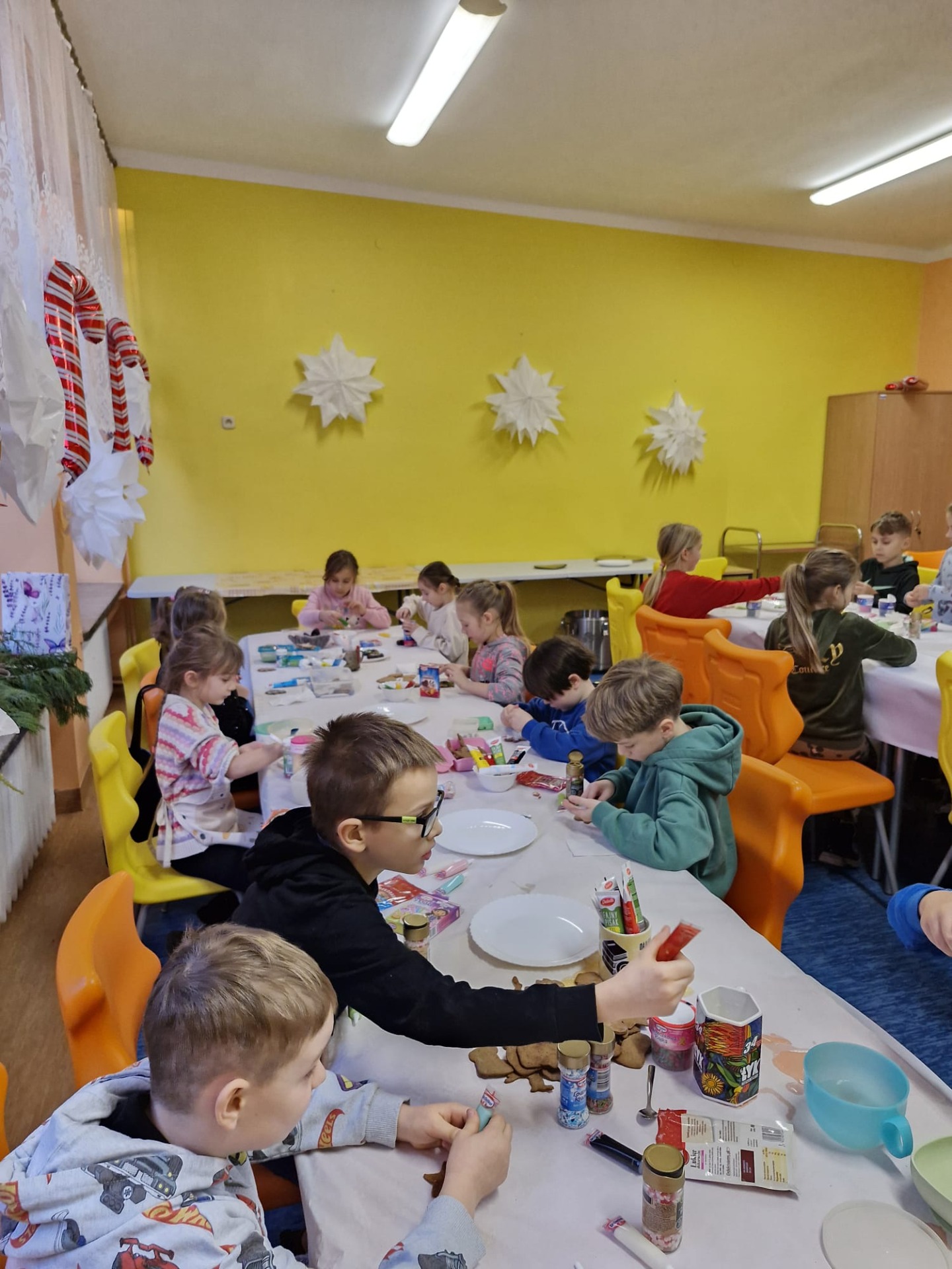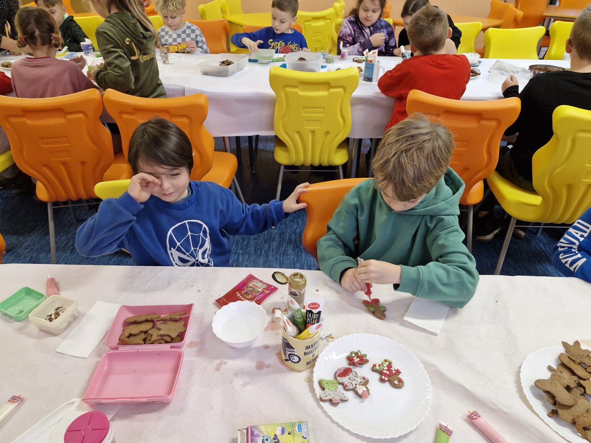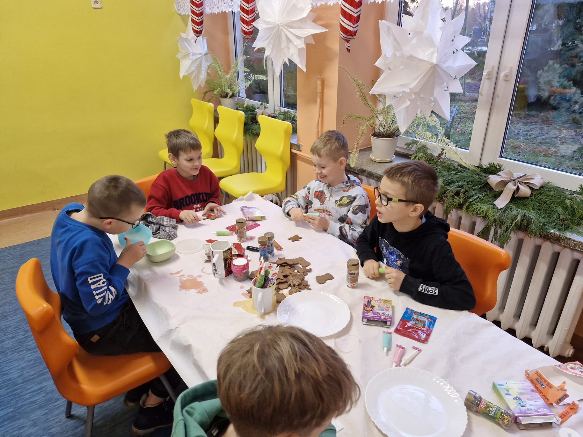 Dzieci z ogromnym zaangażowaniem dekorowały pierniki kolorowymi lukrami, posypkami i innymi ozdobami, tworząc wyjątkowe, niepowtarzalne wypieki. Nie zabrakło uśmiechów, dobrej zabawy i rozmów o tradycjach bożonarodzeniowych.